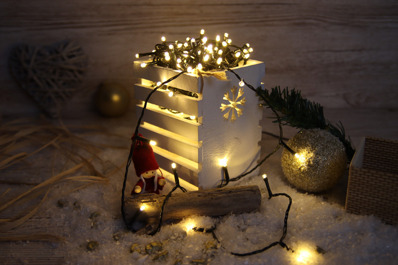 * Felhasználás: Karácsonyfák, korlátok, ablakkeretek, bokrok körbetekerése.