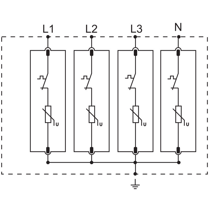 Védelmi szint < 4 kV, a beépítés szokásos helye: főelosztó - T2 típus: túlfeszültség-levezetők