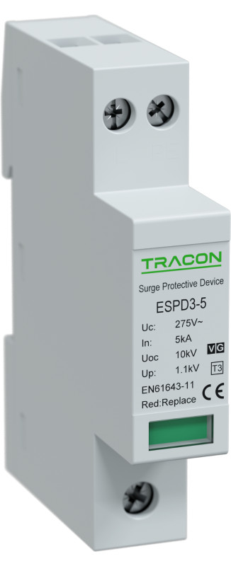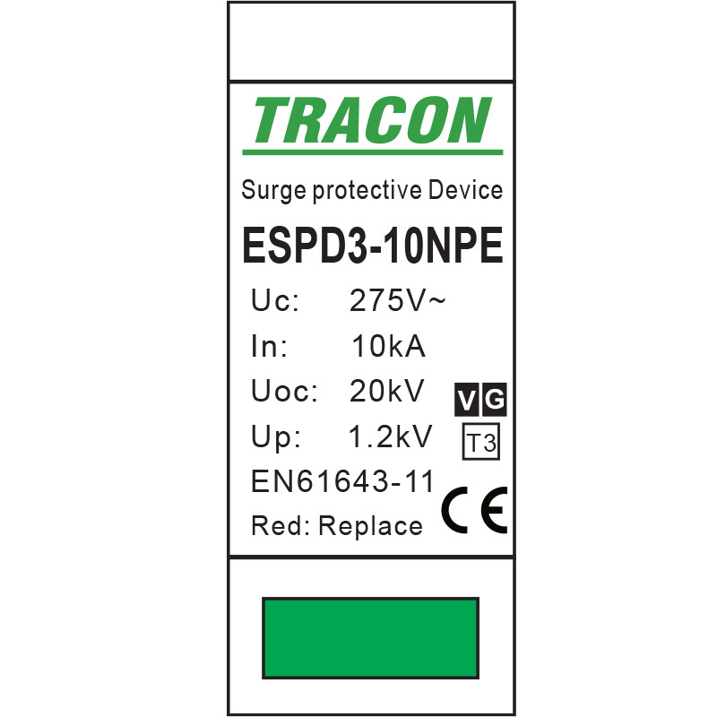 TRACON ESPD3-10-1+1P T3 AC típusú túlfeszültség levezető, egybeépített Uc:275V; In:10kA; Uoc:20kV; Up:1,2kV; 1+1P