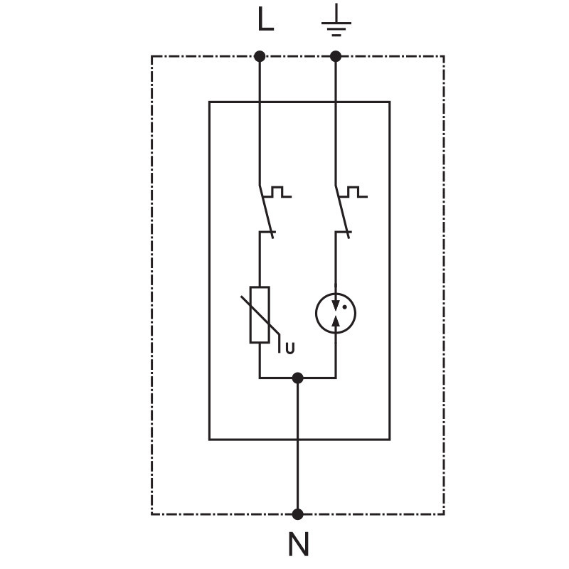 Védelmi szint < 4 kV, a beépítés szokásos helye: főelosztó - T2 típus: túlfeszültség-levezetők