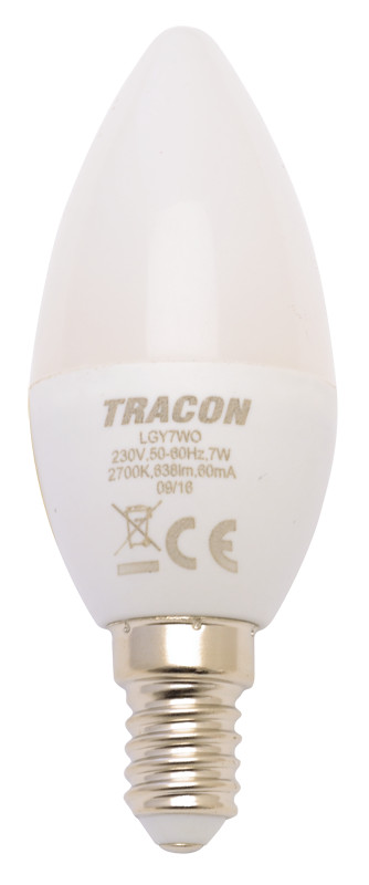 Bec Led lumanare alb TRACON LGY7NW LED 230V, 50Hz, 7W, 4000K, E14, 500lm, 250°