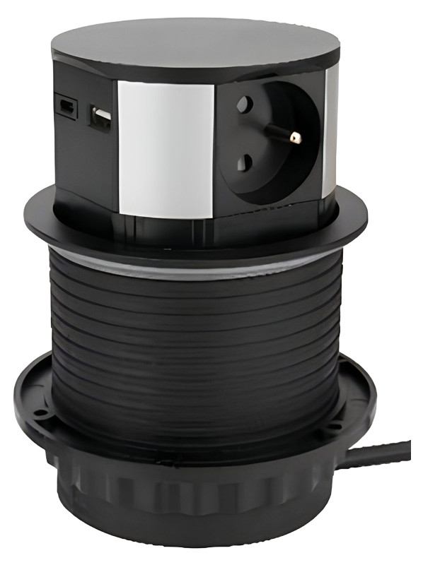 TRACON RE1003USB Asztali aljzat (előugró) 3xSchuko, USB-A, USB-C, max. 16A, 230VAC, 3680W, H05VV-F