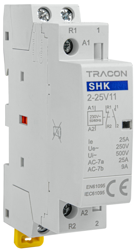 TRACON SHK2-25V11 Installációs kontaktor 230V AC, 50Hz, 1 Mod, 1×NO+1×NC, AC1/AC7a 25A