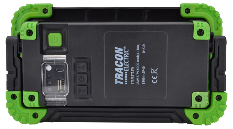 TRACON STLFLBT15W Bluetooth hangszórós akkumulátoros LED szerelő fényvető 15W, 6000K, 3,7V, 8000mAh, Li-Ion, 1500lm, 4-10 h, IP40
