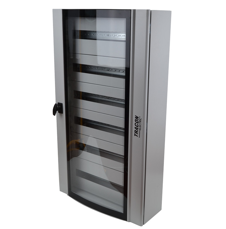 TRACON TGE6010520 Ívelt biztonsági üvegajtós fémelosztószekrény 600×1050×200mm / 144M (6×24 mod)