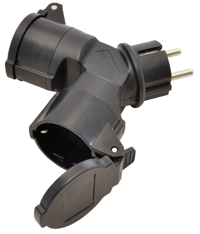 TRACON TICS-212GD Többférőhelyes átalakító csatlakozó, fekete 250 VAC, 16 A, 2xSCHUKO, max. 3680 W, IP44