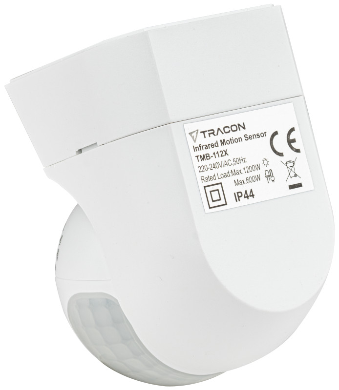 TRACON TMB-112X Mozgásérzékelő, infra, falon kívüli, fehér 220-240 VAC, 12 m, 360°, 10 s-15 min, <3-2000 lx, IP44