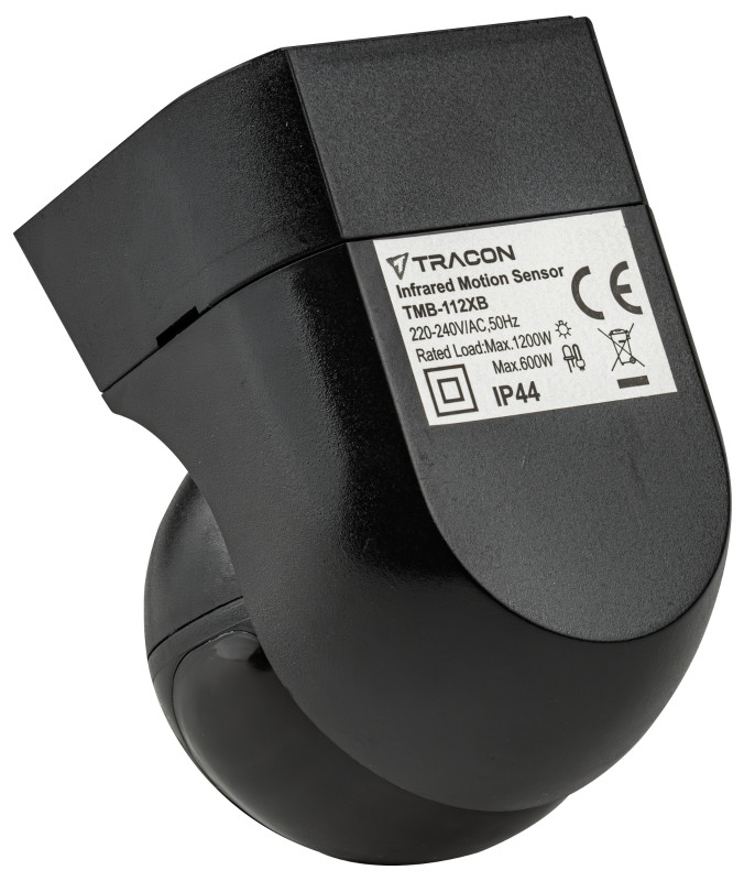 TRACON TMB-112XB Mozgásérzékelő, infra, falon kívüli, fekete 220-240 VAC, 12 m, 360°, 10 s-15 min, <3-2000 lx, IP44