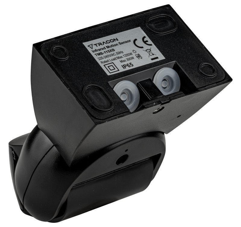 TRACON TMB-115XB Mozgásérzékelő, infra, falon kívüli, fekete 220-240 VAC, 12 m, 360°, 10 s-15 min, <3-2000 lx, IP65
