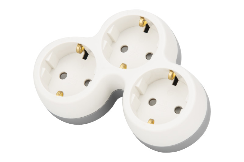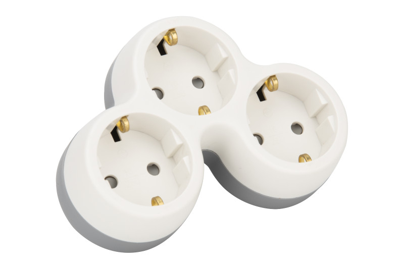 TRACON TND3 Többférőhelyes átalakító csatlakozó, szürke + fehér 3×SCHUKO, max.16A, 230VAC, 3680W, PP