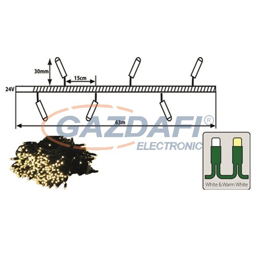 TRONIX 025-020 LED-es fényfüzér fák megvilágítására, zöld kábel, 63m, hideg és meleg fehér fény, IP44 általános leírása: