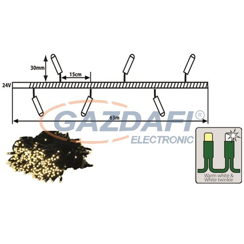 TRONIX 025-069 LED-es fényfüzér fák megvilágítására, zöld kábel, 63m, meleg fehér fény megcsillanó hideggel, IP44 általános leírása: