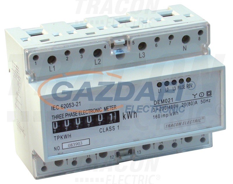 TRACON TVO-F3M2 Elektromech. fogyasztásmérő közvetlen méréshez, háromfázisú