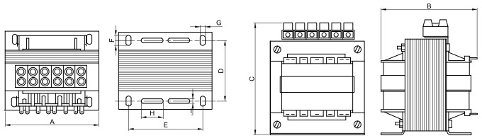 TRACON TVTRB-100-A Biztonsági, egyfázisú kistranszformátor 230-400V / 6-12-24V, max.100VA