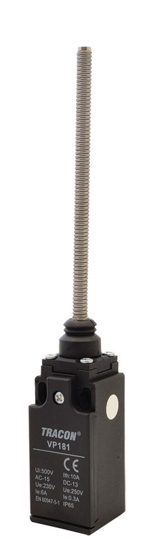TRACON VP181 Helyzetkapcsoló, rugószáras (acél) 1xNO+1xNC, 6A/230V AC-15, 0,3A/250V DC-13, IP65