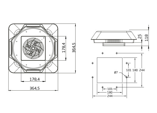 TRACON VR1000 Tető ventilátor 1000 m3/h, IP44, 80 W, 230 VAC, 0.45 A, 72 dB általános leírása: