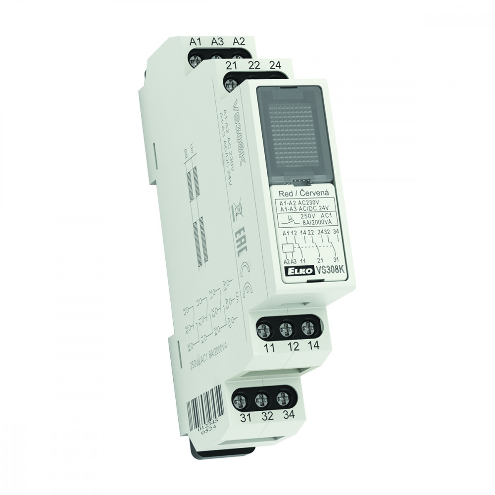 Elko VS308K kék - Segédrelé, 3x CO, 8 A, 230 VAC, AC/DC 24 V