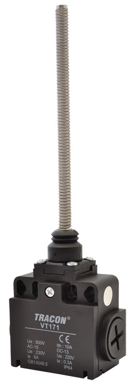 TRACON VT171 Helyzetkapcsoló, rugószáras (műanyag+acél) 1xNO+1xNC, 6A/230V AC-15, 0,3A/250V DC-13, IP65