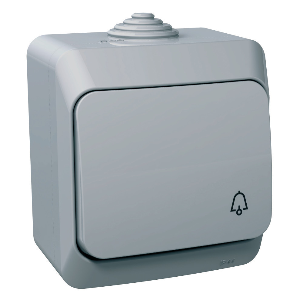 CEDAR PLUS Egypólusú nyomó, csengőjellel, IP44, szürke