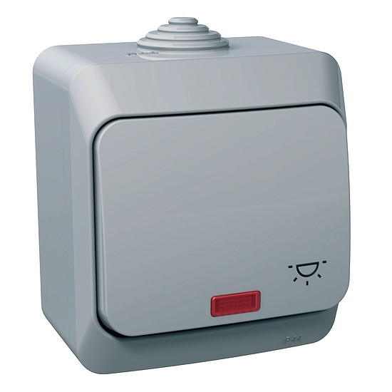 CEDAR PLUS Egypólusú nyomó lámpajellel, jelzőfénnyel, IP44, szürke