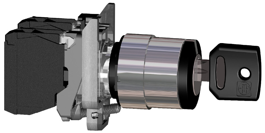 Harmony ATEX D komplett kulcsos háromállású kapcsoló, Ø22, fém, 2NO, fekete