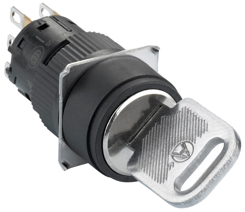 kerek fekete kulcsos választókapcsoló Ø16-kiálló retesz 2 állású-1CO