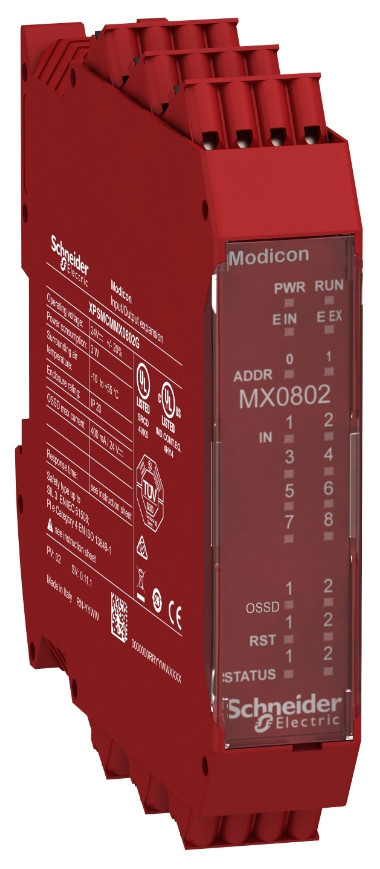 SCHNEIDER XPSMCMMX0802G Preventa XPS MCM biztonsági vezérlő, biztonsági bővítő I/O modul, 8DI+2DO (+start/reset/teszt/státusz), rugós