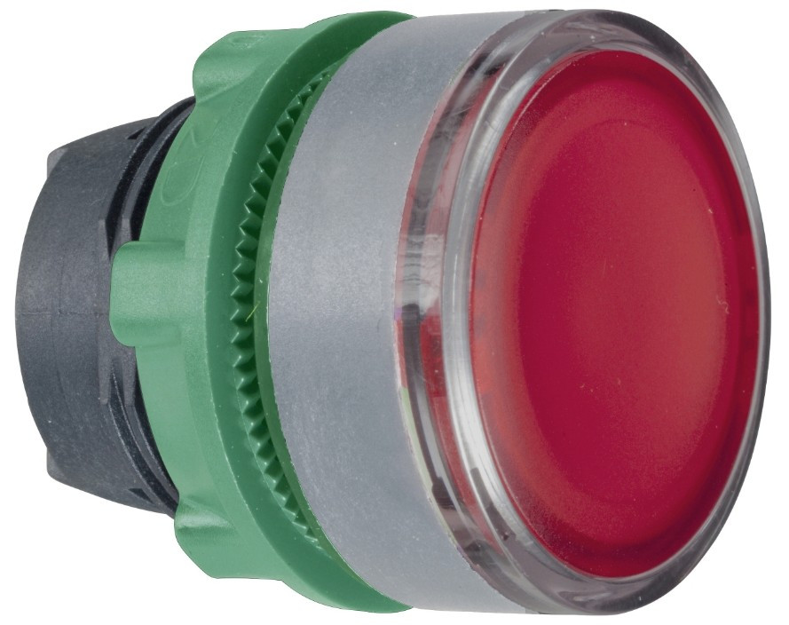 SCHNEIDER ZB5AH0483C0 Harmony műanyag világító nyomógomb fej, Ø22, nyomó-nyomó, betehető címke, piros, szürke perem