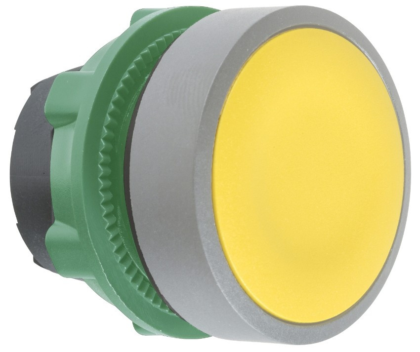 SCHNEIDER ZB5AH05C0 Harmony műanyag nyomógomb fej, Ø22, nyomó-nyomó, sárga, szürke perem
