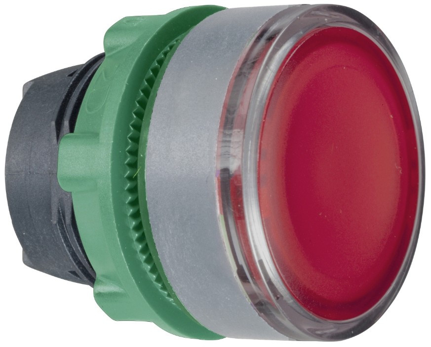 SCHNEIDER ZB5AW343SC0 Harmony műanyag világító nyomógomb fej, Ø22, visszatérő, beépített LED-hez, hornyolt lencsével, piros, szürke perem