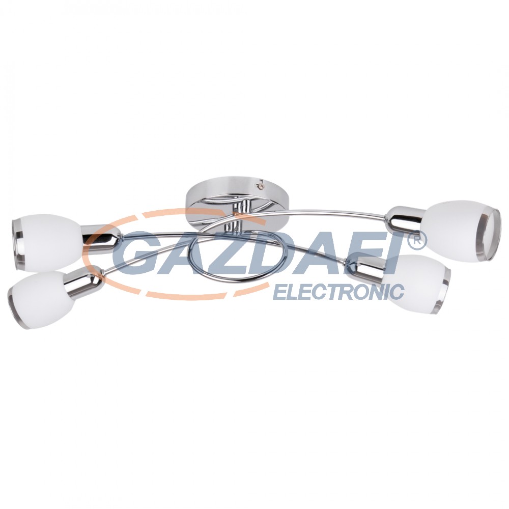 Modern megjelenésű mennyezeti spotlámpa 4 db foglalattal. 66 cm széles, króm színű, fémből készített lámpatest és pozícionálható üveg lámpabúrák. A lámpatest E14-es foglalatkialakítású, max. 4x 40W teljesítményű energiatakarékos fényforrásokkal is használható.