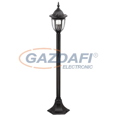 Klasszikus megjelenésű kültéri talpas lámpa 1 db foglalattal. 102 cm magas, a lámpatestnél 19 cm átmérőjű, fekete színű, fémből készített lámpatest és üvegbúra, IP43-as védettséggel. A lámpatest E27-es foglalatú, max. 60W teljesítményű fényforrással használható.