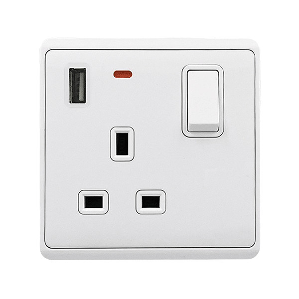 ELMARK 190887/WH LONDON EGYPÓLUSÚ KISCSATLAKOZÓ 2P NYOMÓKAPCSOLÓ NEON+USB FEHÉR