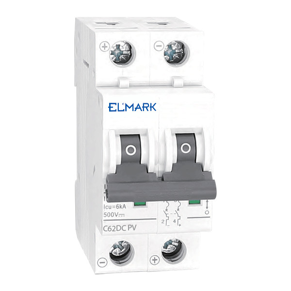 ELMARK 41267 KISMEGSZAKÍTÓ DC62 16A 2P 6KA 500V C KARAKTERISZTIKA NAPELEM RENDSZEREKHEZ