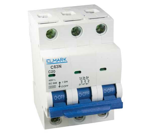 ELMARK 41363 MCB C63N/63A kismegszakító C karakterisztika, 3P, 6kA