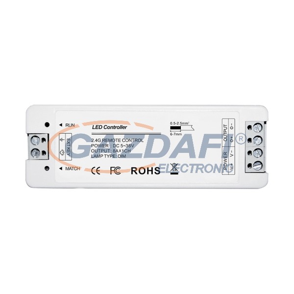 ELMARK 99RECEIVER1 Wireless Single Channel LED Dimmer Receiver Unit, Constant Voltage, 2.4GHz, Max. 30m Range