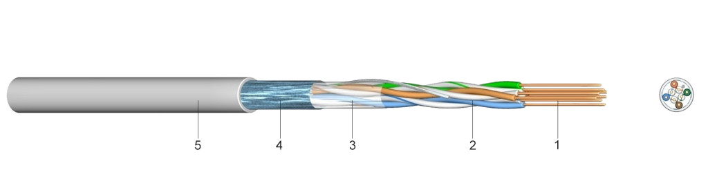 Installációs kábelként kábelcsatornákban és gégecsőben történő vízszintes kábelezéshez, távközlési és informatikai rendszerekbe történő beépítéshez. Alkalmazási területek: ISDN , 10 Base T Ethernet , 100 Base T Ethernet, 1000 Base T , Token Ring 4/16 Mbit/s , CDDI/TPDDI ATM 155 MBit/s.Felépítése: