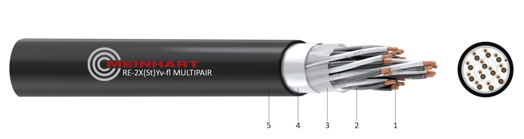 RE-2X(St)Y-fl MULTIPAIR Műszerkábel 300 / 500 Volt 6x2x1,3 mm2 általános leírása: